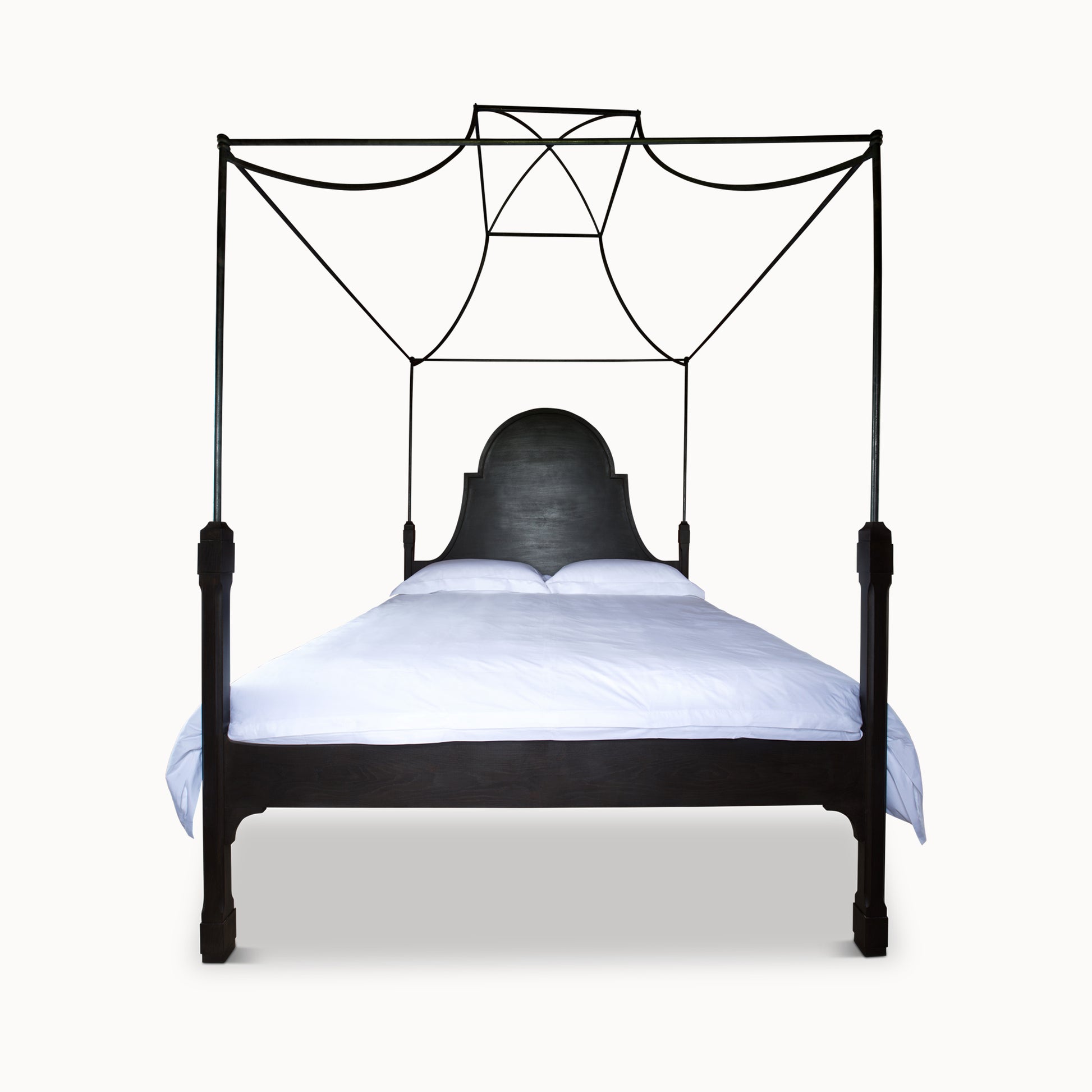 Evoluzione del Bone Bed, il Puritan Baroque presenta un telaio in rovere ebanizzato con baldacchino in acciaio più elaborato, che gli dona un carattere marcatamente barocco. La testata resta invece essenziale e sobria. Compatibile sia con box divano bassi sia con doghe tradizionali.