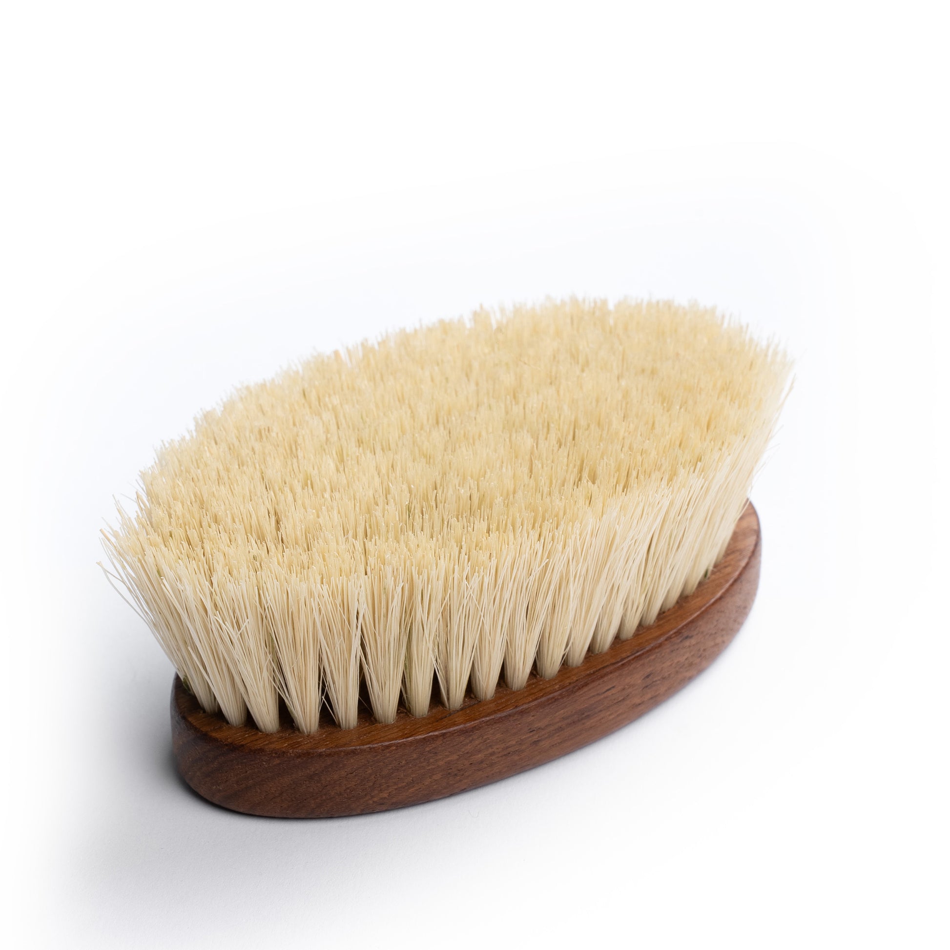 With its ergonomic shape and a unique mix of 99 Tampico and 40 pure copper bristles, the Baby 0.10 Body Brush is designed for deep exfoliation and lymphatic drainage. Crafted from naturally water-repellent Burmese teak, it combines the energising and antibacterial properties of copper for a revitalising dry brushing ritual. Ideal for daily use and professional care. Handmade in Italy.