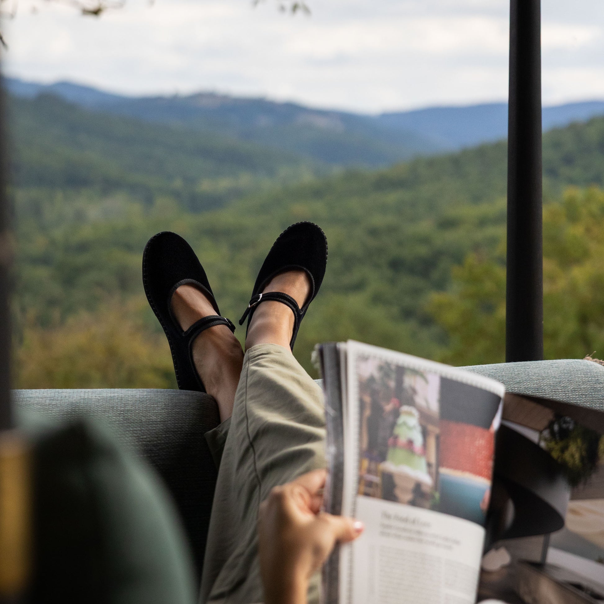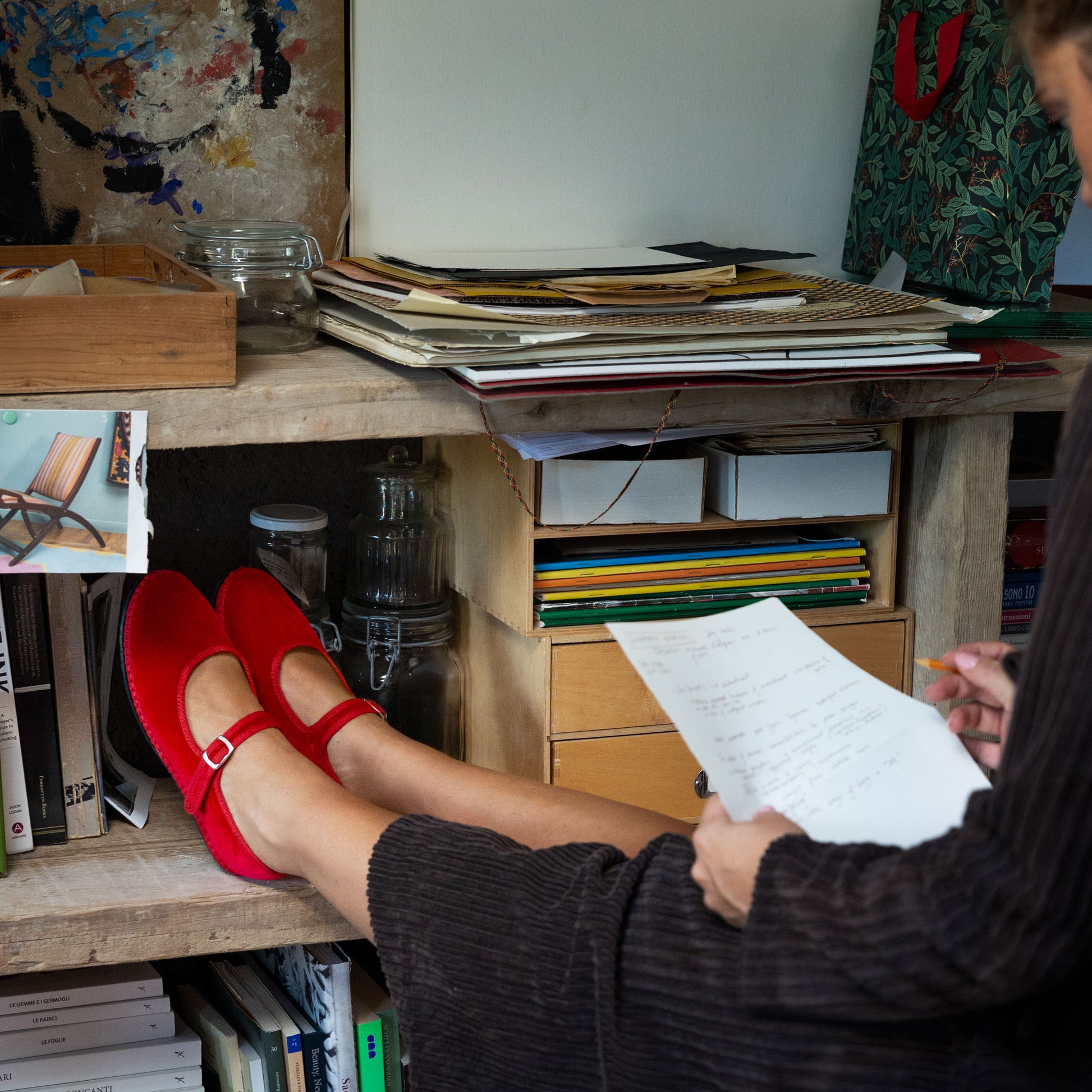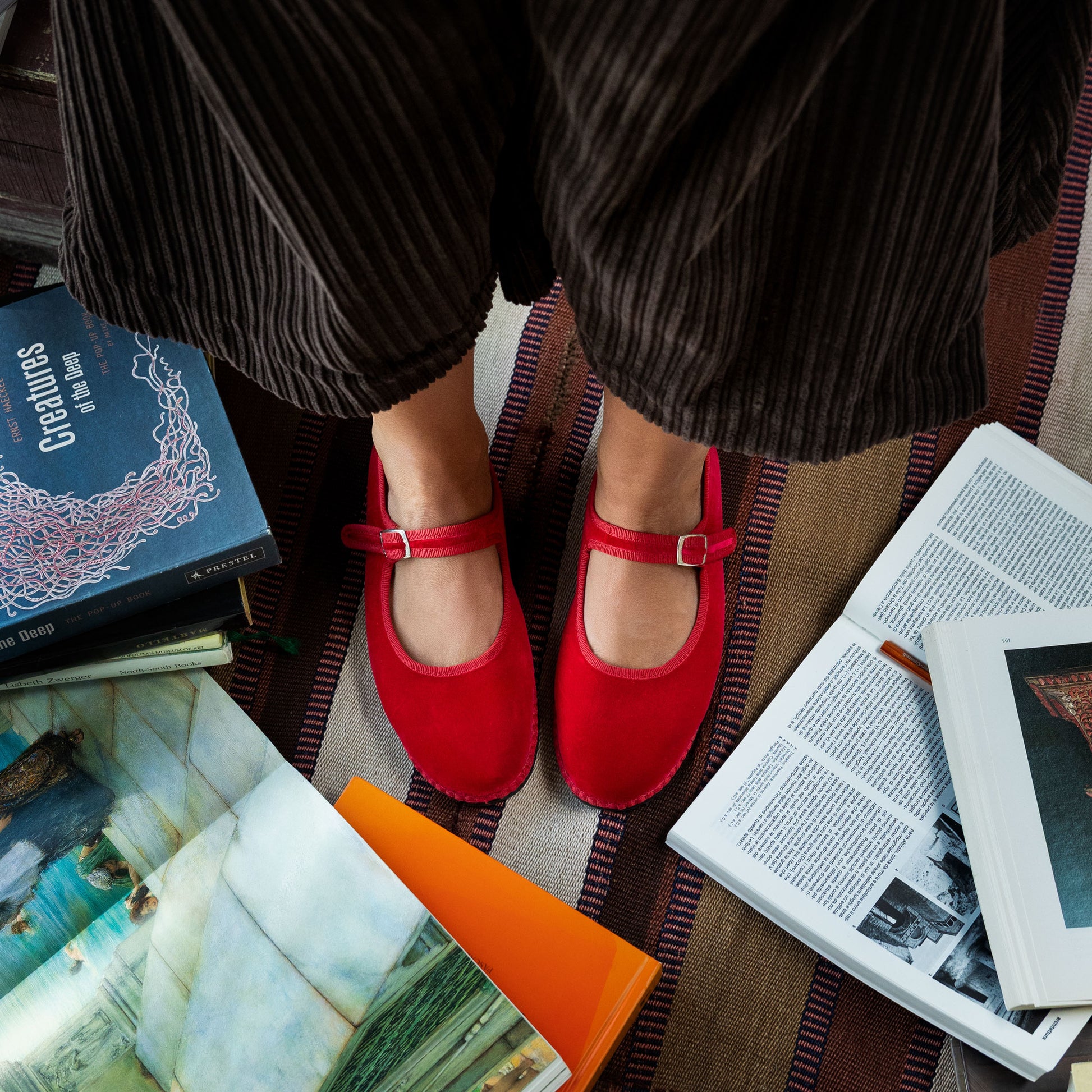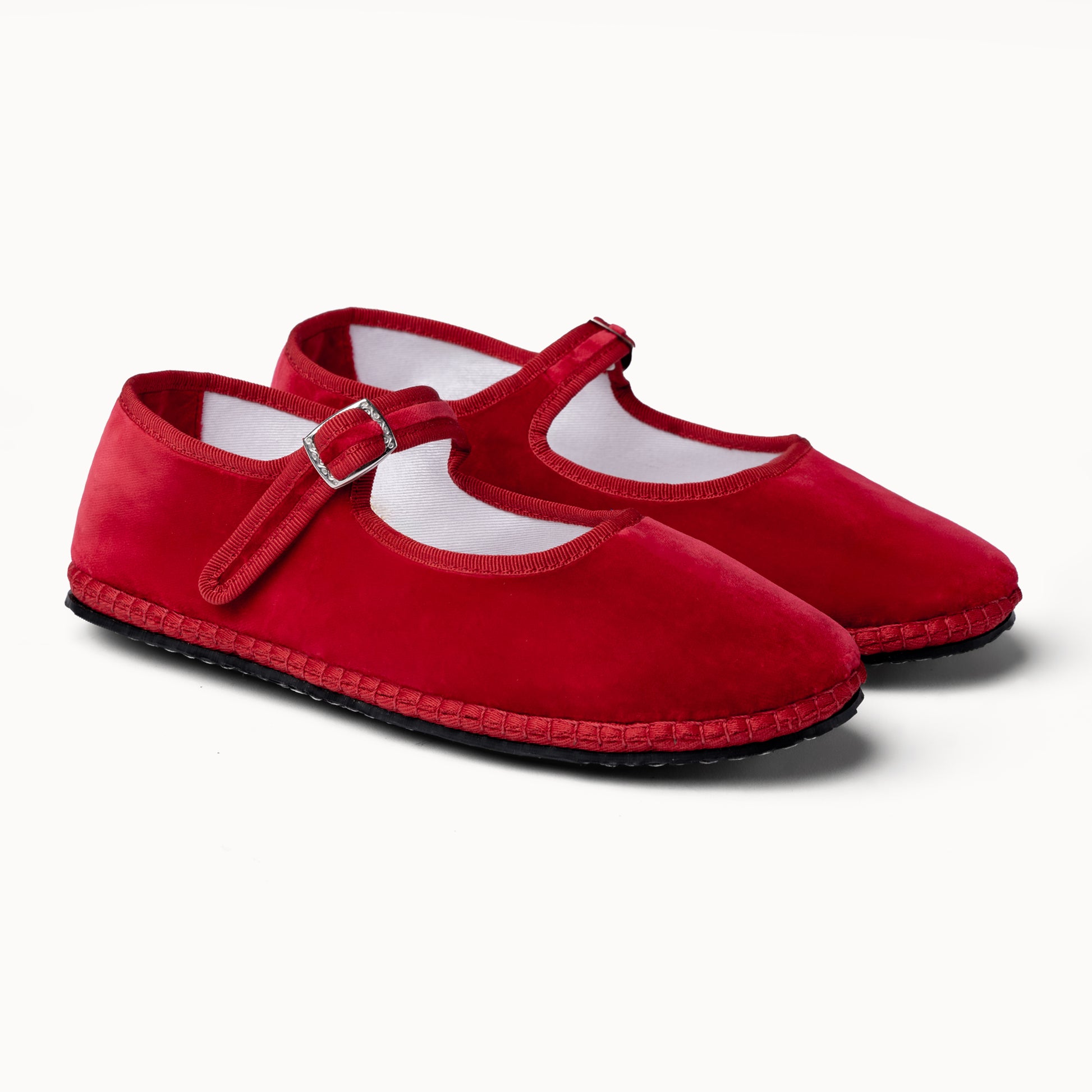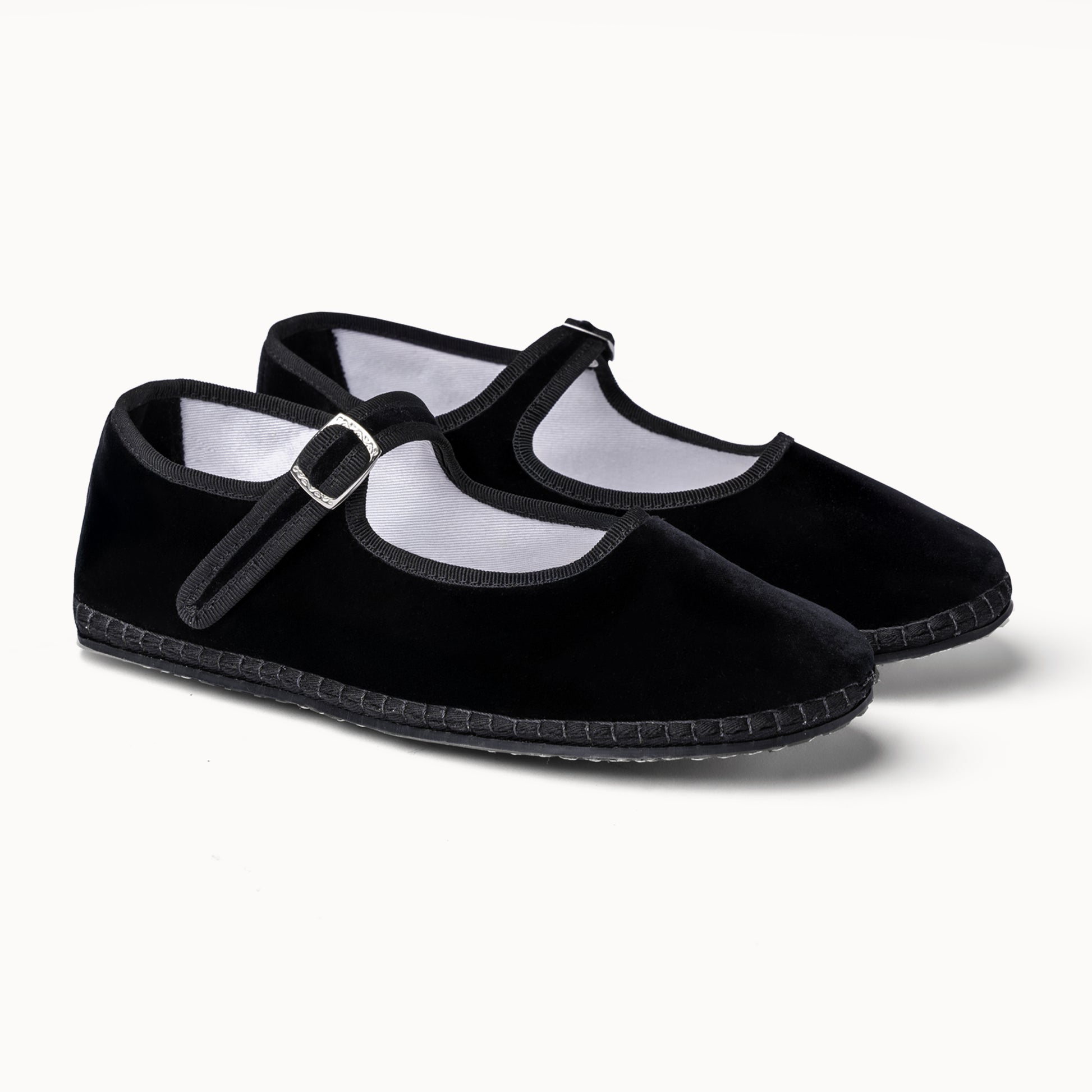 Strap fastening and a playful spirit: these shoes recall childhood designs without sacrificing elegance. Made from 100% cotton velvet, breathable and comfortable, they are perfect for every season and any time of day