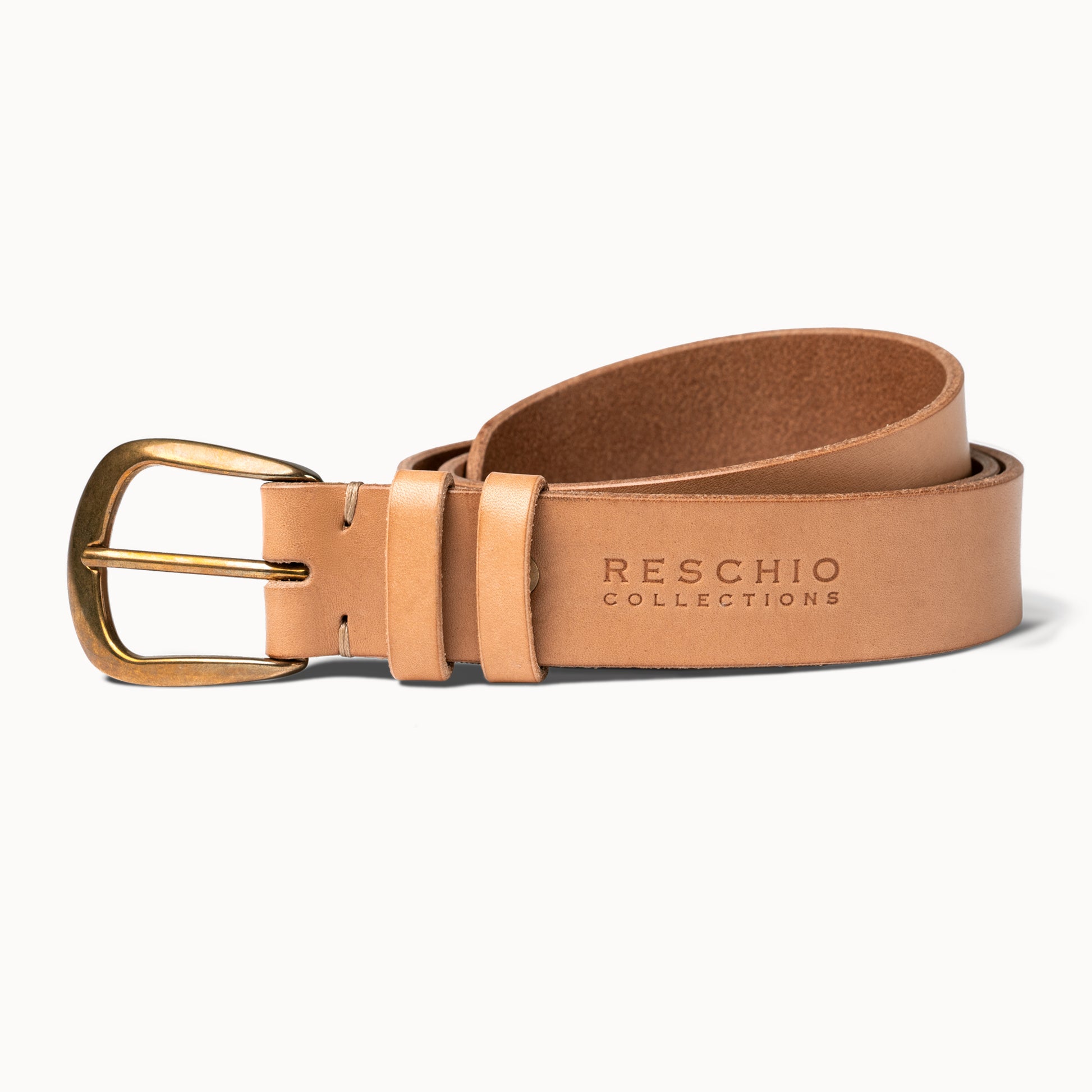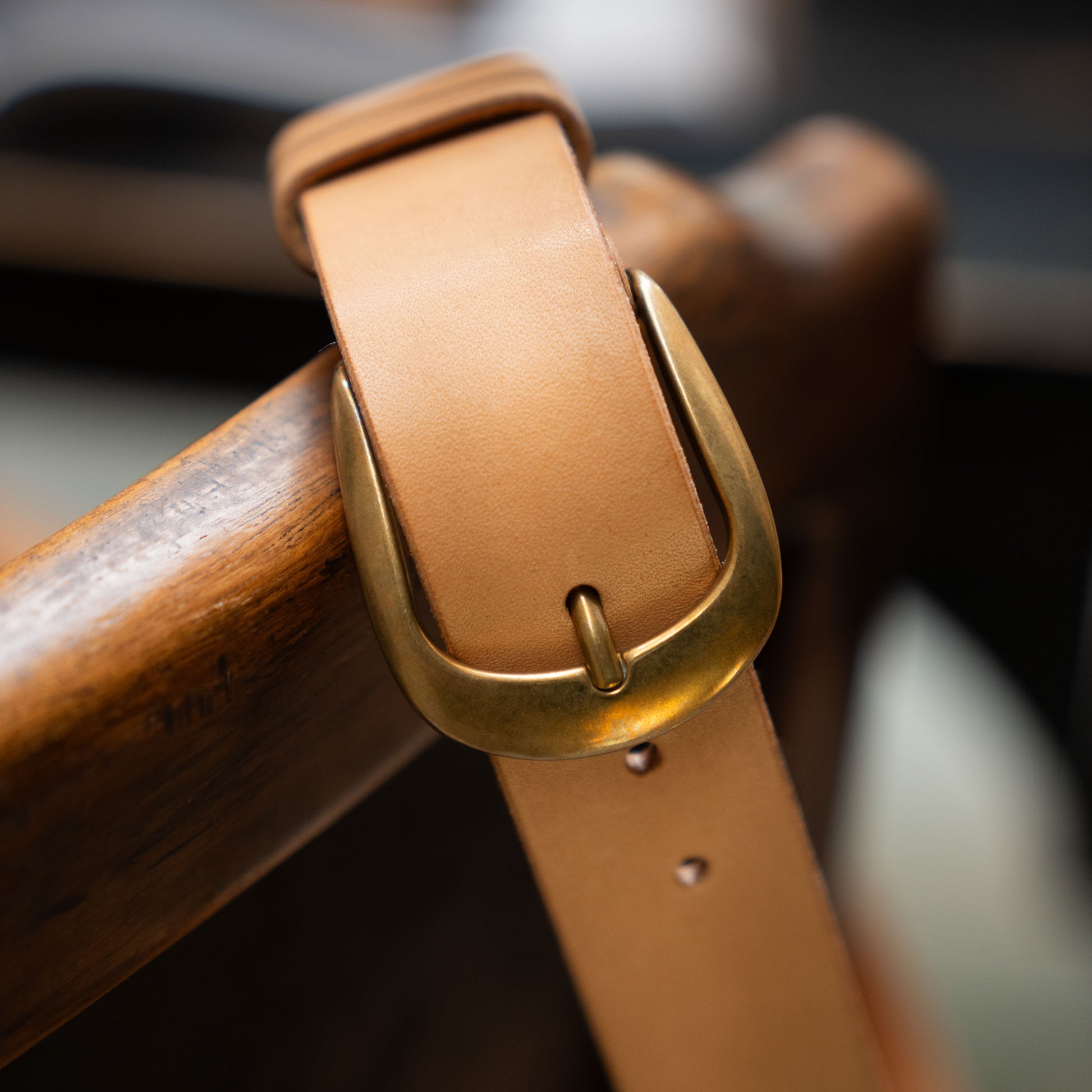 This belt is handmade from natural, raw Tuscan vegetable-tanned leather. Its pale hue will deepen with time, gradually darkening into a warm, tanned patina that becomes uniquely yours. A hand-hammered brass rivet and solid brass buckle complete this timeless piece, designed to last and to grow more beautiful with every wear.