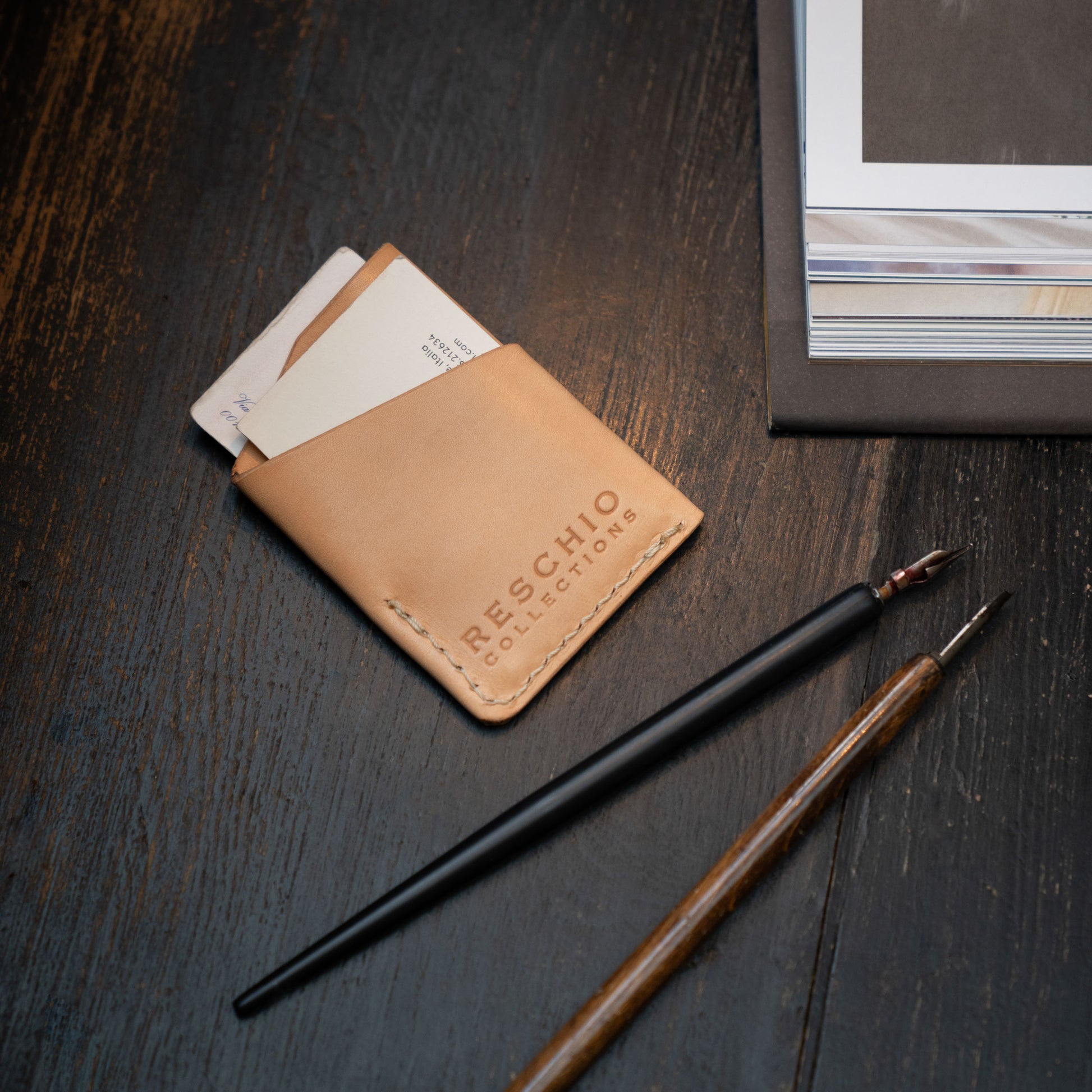 Deceptively simple, this card holder is a quiet triumph of craftsmanship. Made from a single piece of natural Tuscan leather, vegetable-tanned and folded to form three compartments, it is entirely handmade. Slim yet sturdy, it is ideal for those who value essential design and lasting quality. With time and use, the leather develops a unique patina, growing ever more beautiful with age.