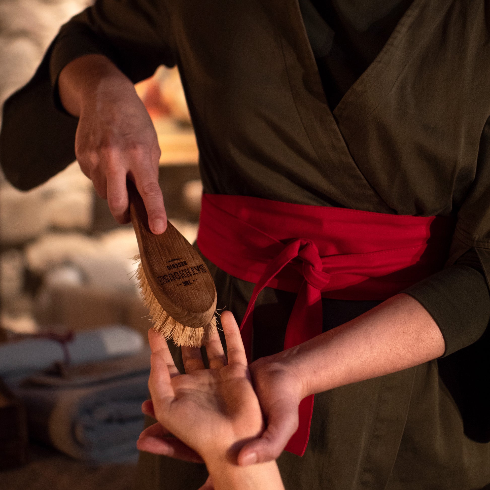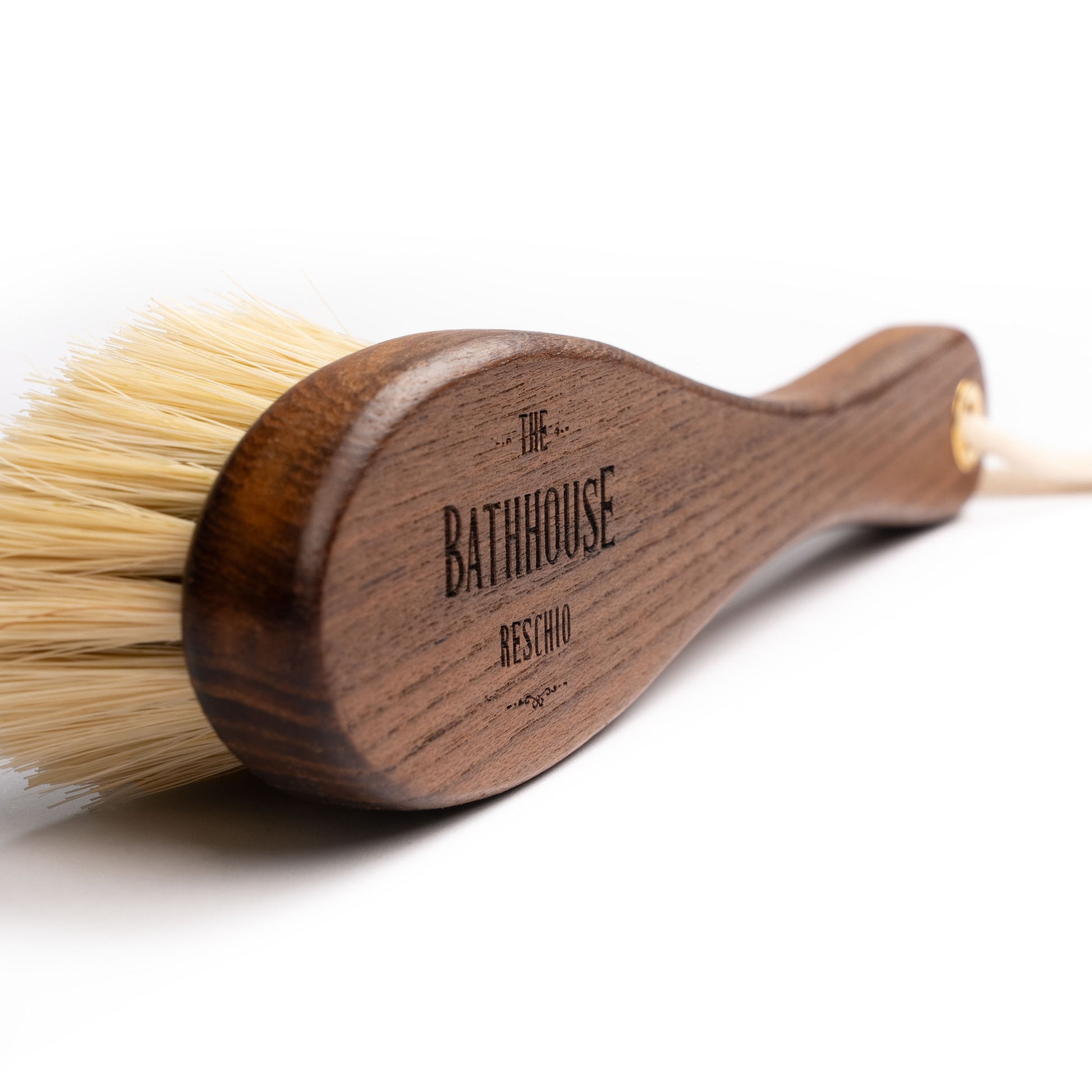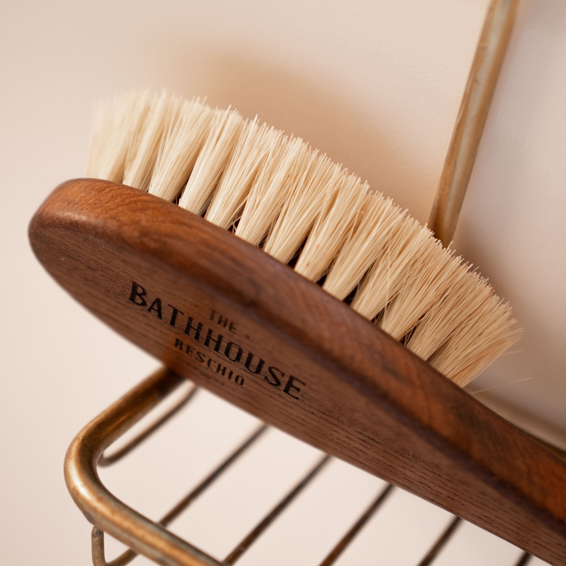 Made from European beech wood and Tampico plant fibres, this oval body brush is ideal for introducing dry brushing into your daily ritual. The longer bristles exfoliate deeply yet gently, making it suitable even for sensitive skin. An elastic hand strap ensures a secure grip. Crafted in Italy, it offers a natural, effective way to stimulate the skin and boost circulation.