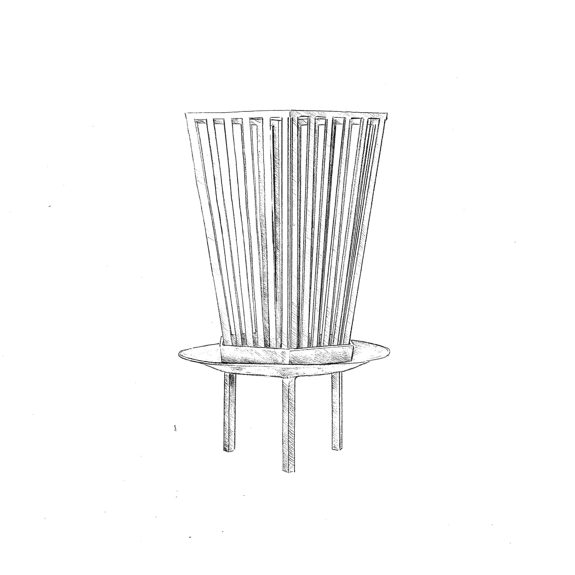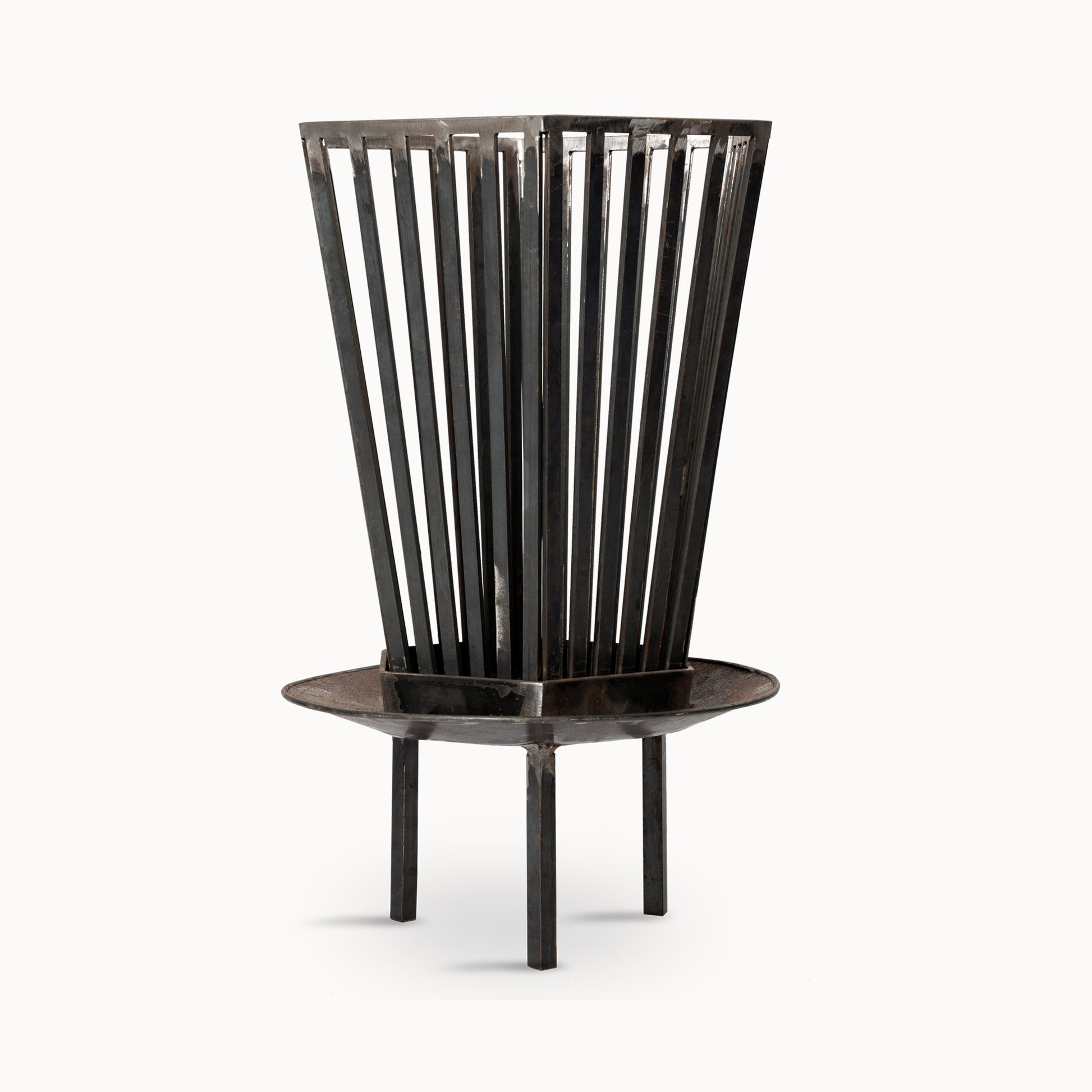 A hexagonal outdoor brazier, perfect for garden terraces or driveways — a glowing beacon for evening gatherings. Its current design owes a detail to a thoughtful guest, who once suggested adding an ash tray beneath: a smart addition now found in every piece.