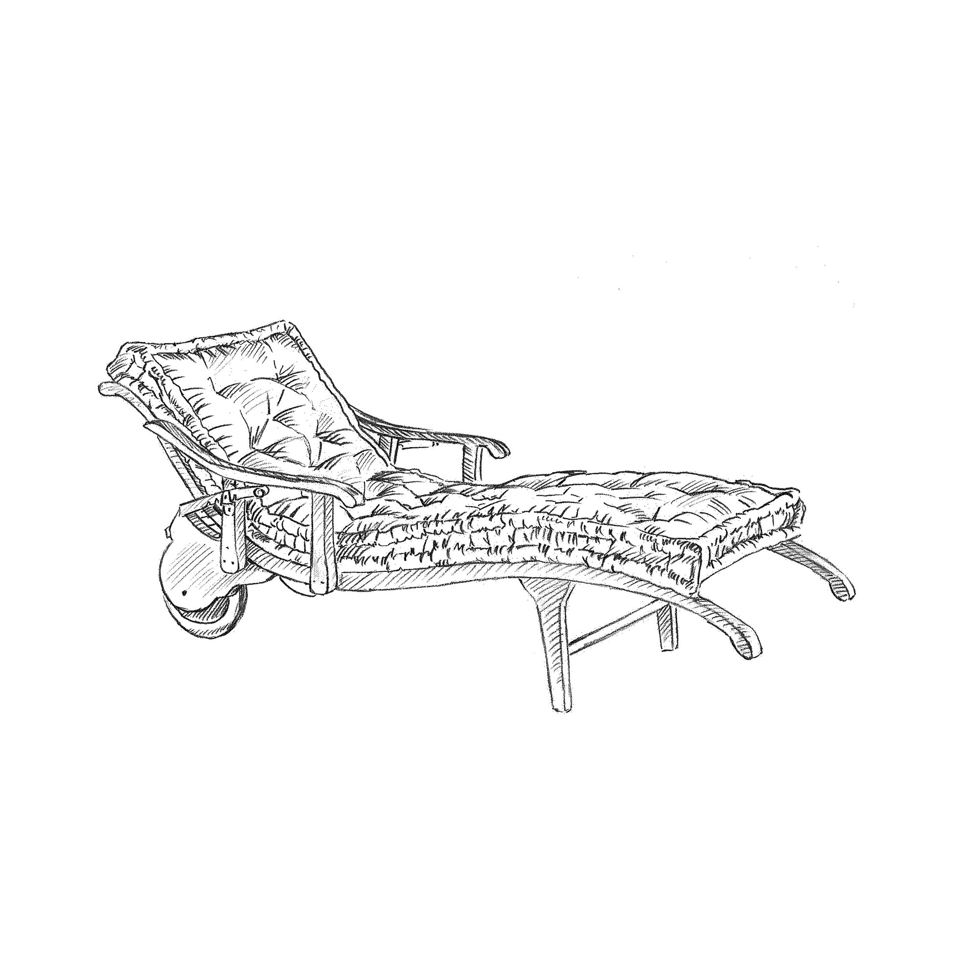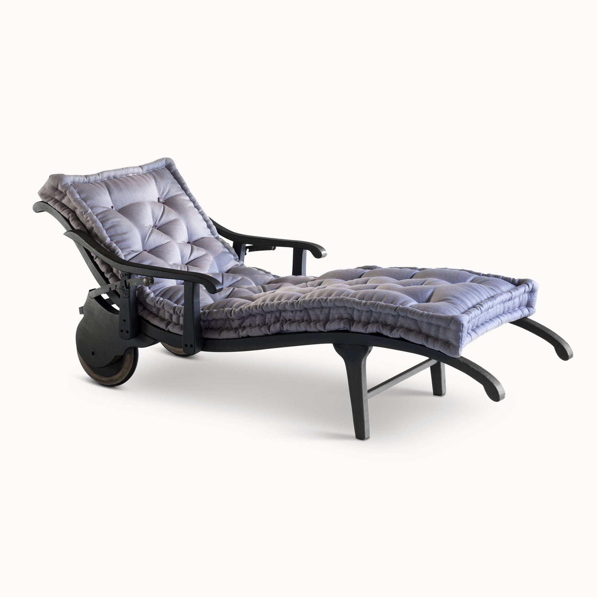 Architect Benedikt Bolza claims to have discovered the prototype for this recliner in the attics of Palazzo Corsini in Florence. Crafted from beechwood, it is designed primarily for indoor spaces—particularly libraries. Despite its solid structure, it is easy to move thanks to its rubber-coated wheels. The quilted wool-blend cushion is shaped to cradle the body in total relaxation, and the adjustable backrest accommodates different reclining positions.