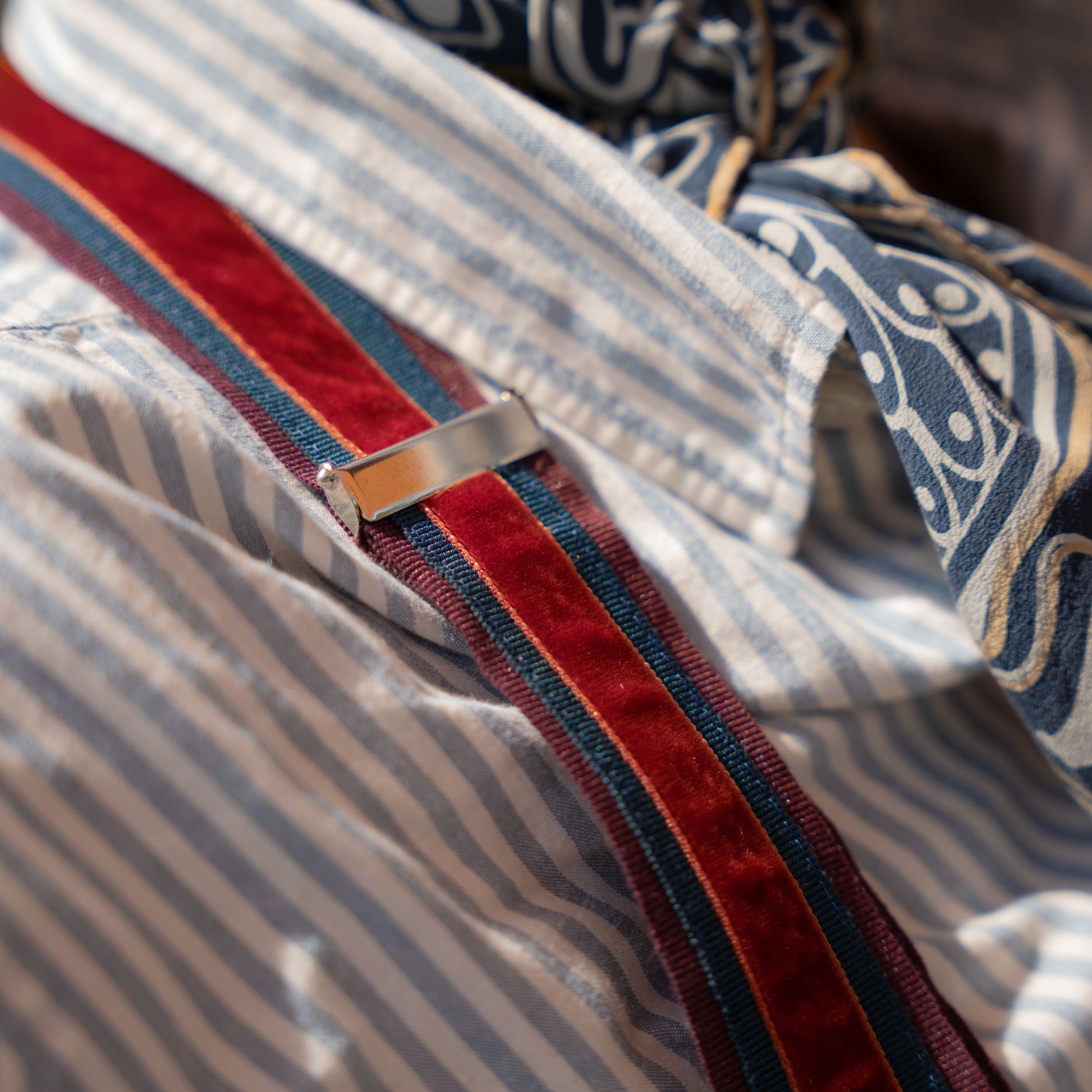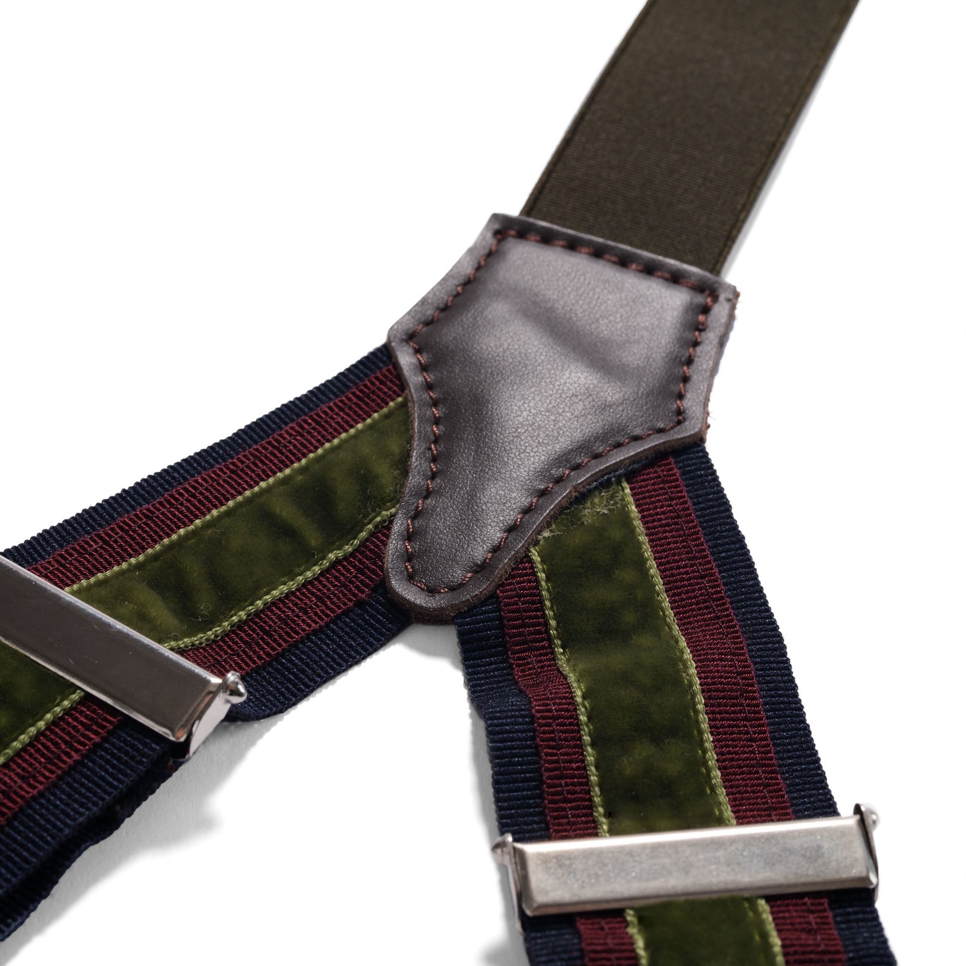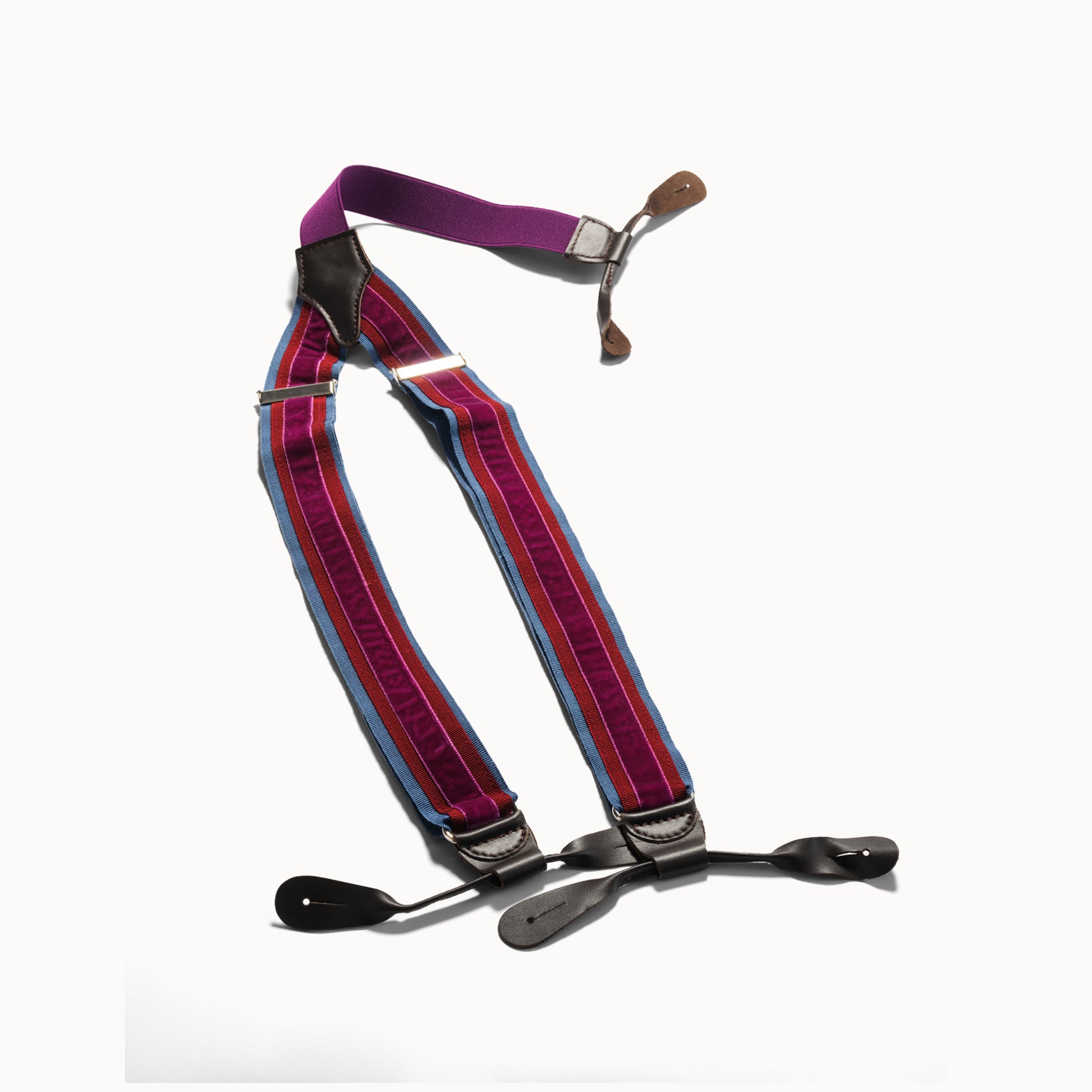 Crafted for those who appreciate refined details, these handmade braces blend elegance with comfort. Featuring grosgrain bands, smooth velvet and hand-stitched calf leather loops, every component is carefully selected. The one-size design adjusts easily with an elastic and sliding system. Meant to be worn with tailored trousers, in true classic style. Time and wear will only add to their charm.